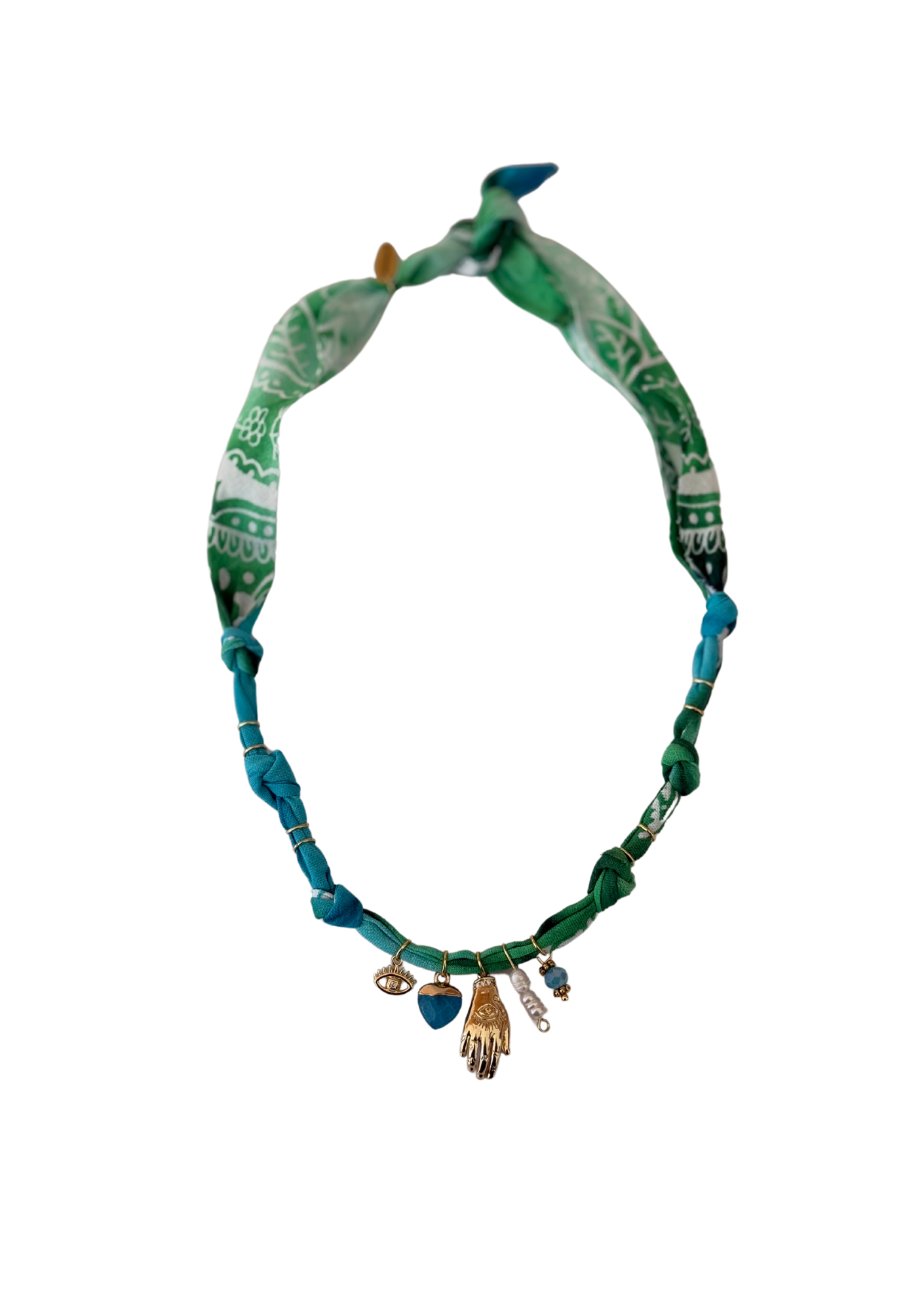 Ce bijou bandana s’adapte à tous vos styles : 3 usages, coton 100%, acier inoxydable et pierres naturelles.