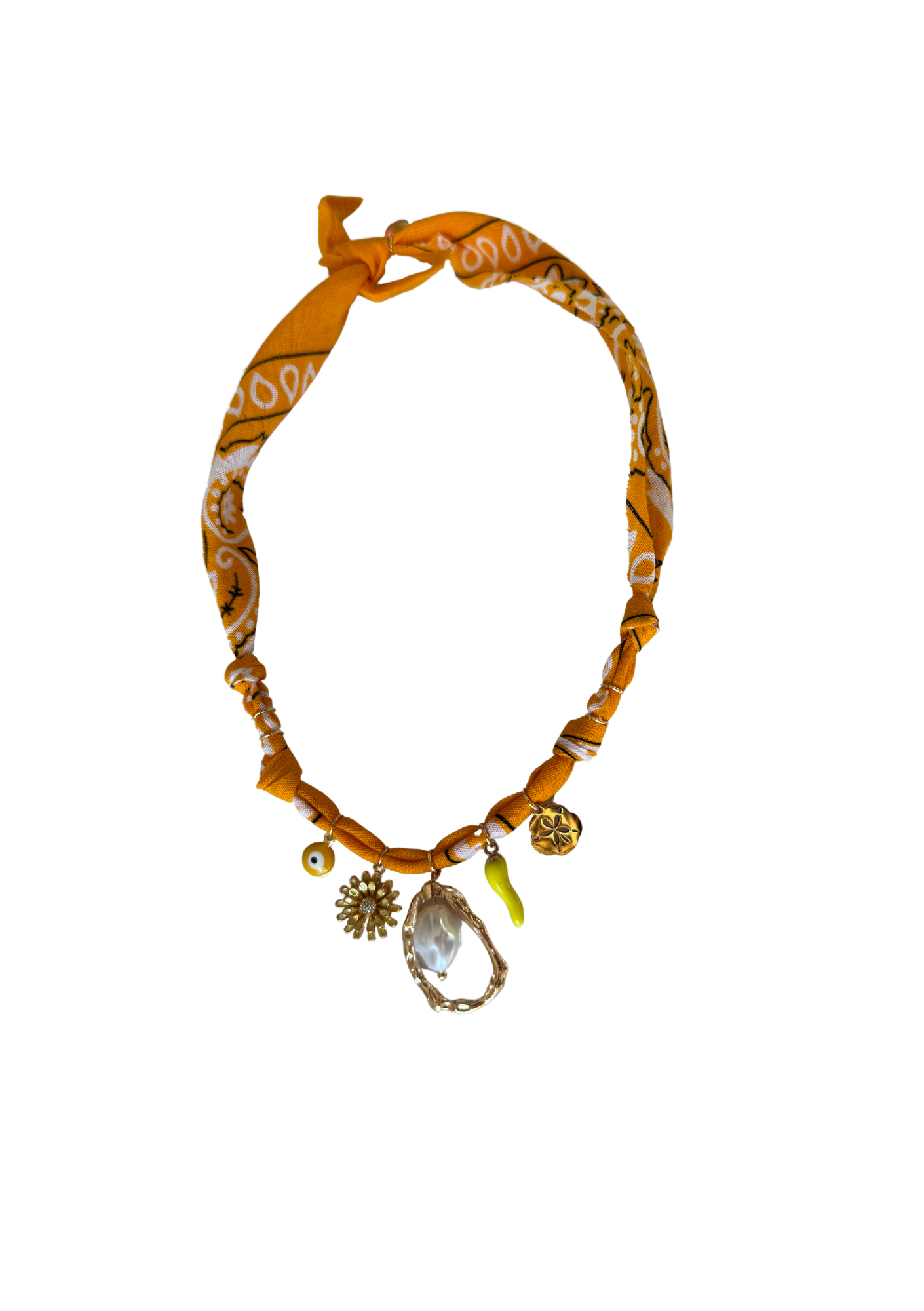 Conçu pour s’adapter à toutes vos humeurs, ce bijou façon bandana se décline en collier, bracelet ou bracelet de cheville. Tissé en coton pur et orné d’un motif en acier inoxydable serti de pierres naturelles, il incarne le style libre et affirmé.
