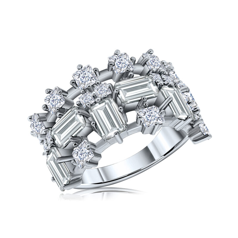 Originale et graphique, la Bague Puzz Stone se distingue par ses lignes emboîtées inspirées d’un puzzle moderne. Sertie de pierres Diamélite 5A, elle brille avec élégance. Conçue en argent trempé or, elle allie caractère et raffinement. Disponible en finition argent.
