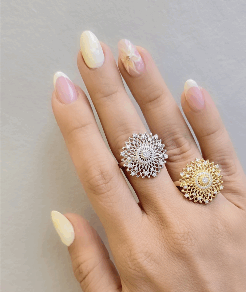 Apportez une touche de fraicheur avec la bague ZeliSun. Un design inspiré du Zelij, en forme de soleil pour sublimer vos looks cet été.