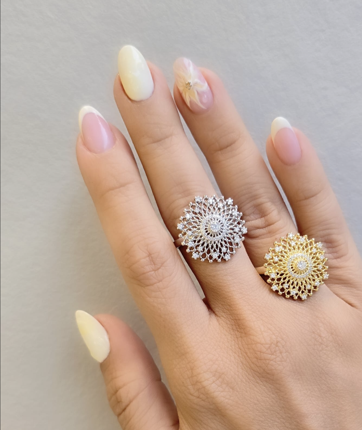 Disponible en 2 finitions, Or Jaune et blanc sur une base argent trempé Or.