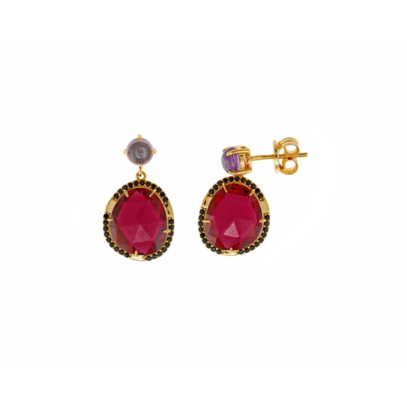 Disponibles en 2 finitions, Or Jaune et Pierre Grenat Amethyste ou Quartz Thermal Peridot sur une base argent trempé Or.