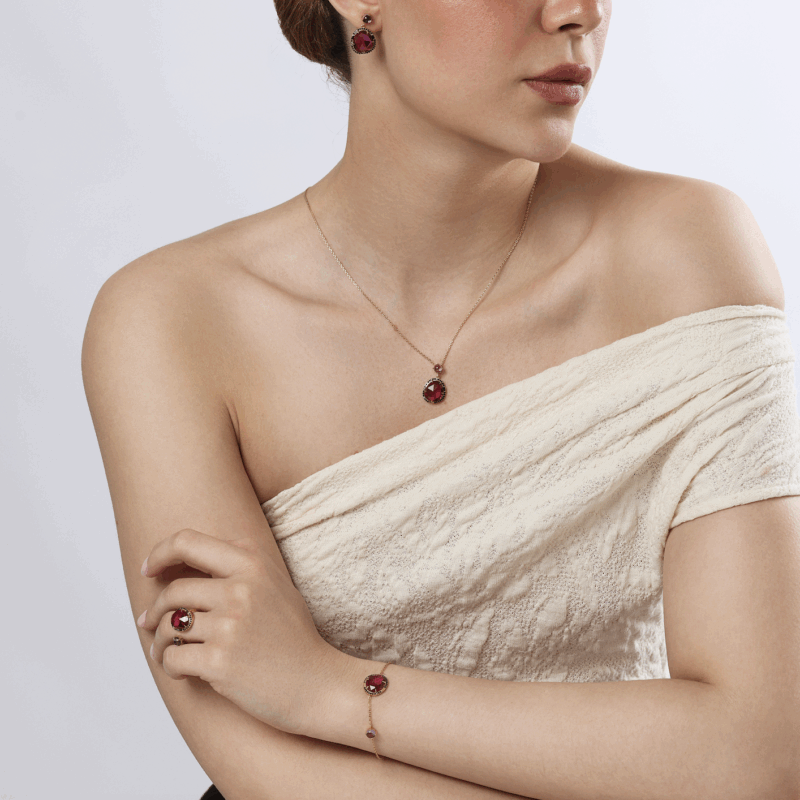 Matériau : Argent trempé or – Pierre Grenat Amethyste ou Quartz thermal