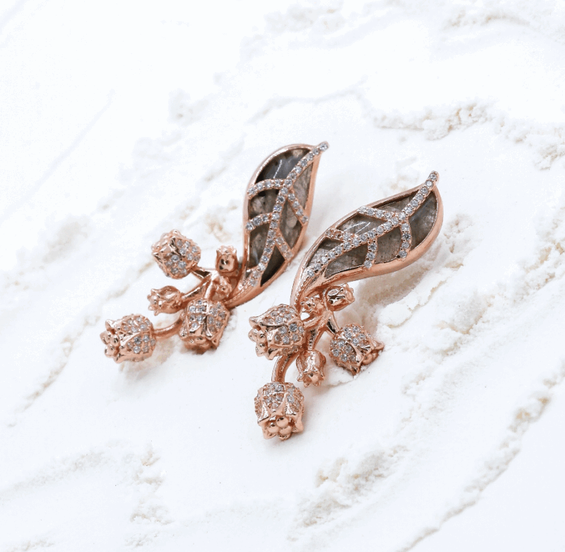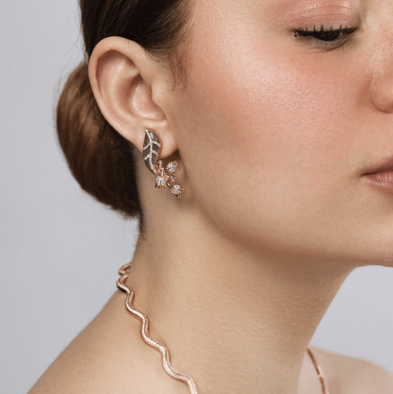 Les boucles d’oreilles Flower Siminou capturent la beauté florale avec une finesse délicate.
