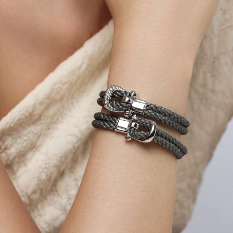 Ses cordons tissés et son fermoir imposant en argent trempé or créent un contraste audacieux. Un accessoire chic et moderne qui apporte une touche de caractère à votre look.