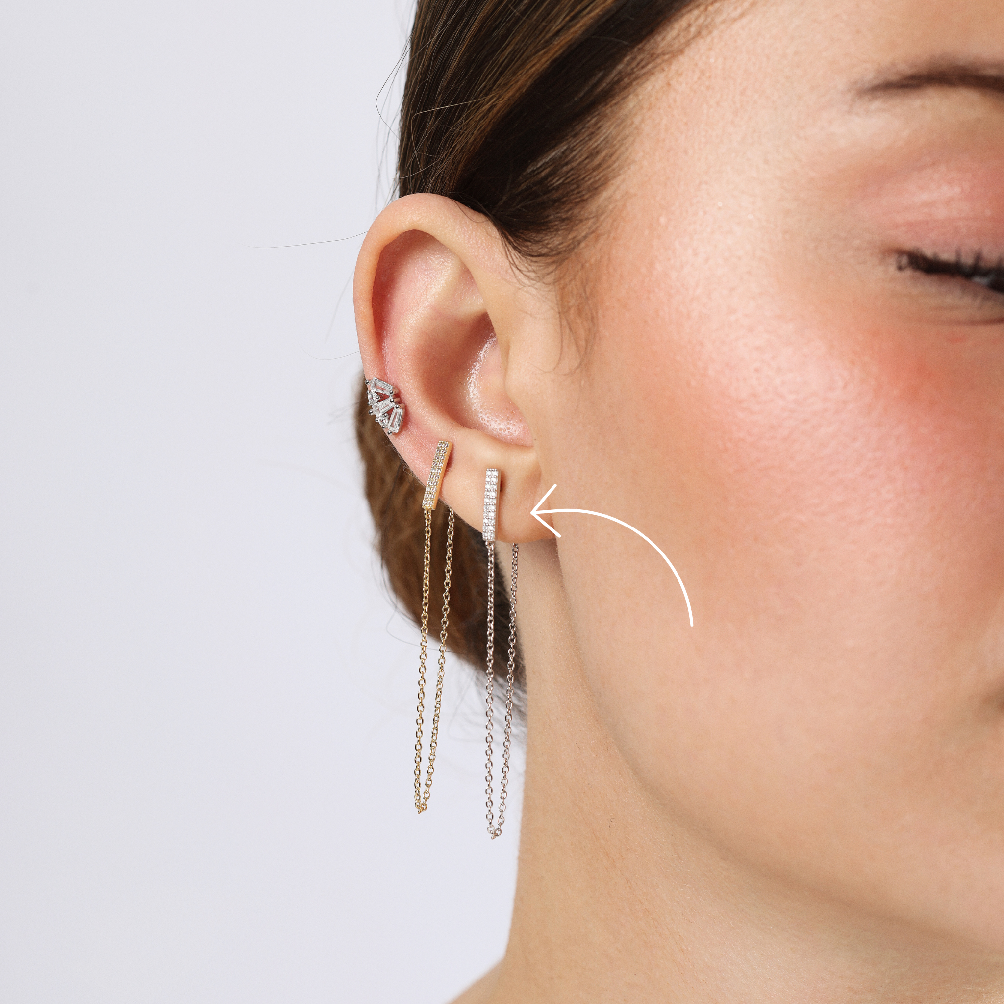 Piercing Chaîne Pavé Salva – Un design raffiné où une chaîne délicate se prolonge vers un pavé scintillant de Diamelite 5A. Disponible en finition or ou argent, ce bijou en argent trempé or apporte une touche de lumière et d’élégance à toutes vos compositions.