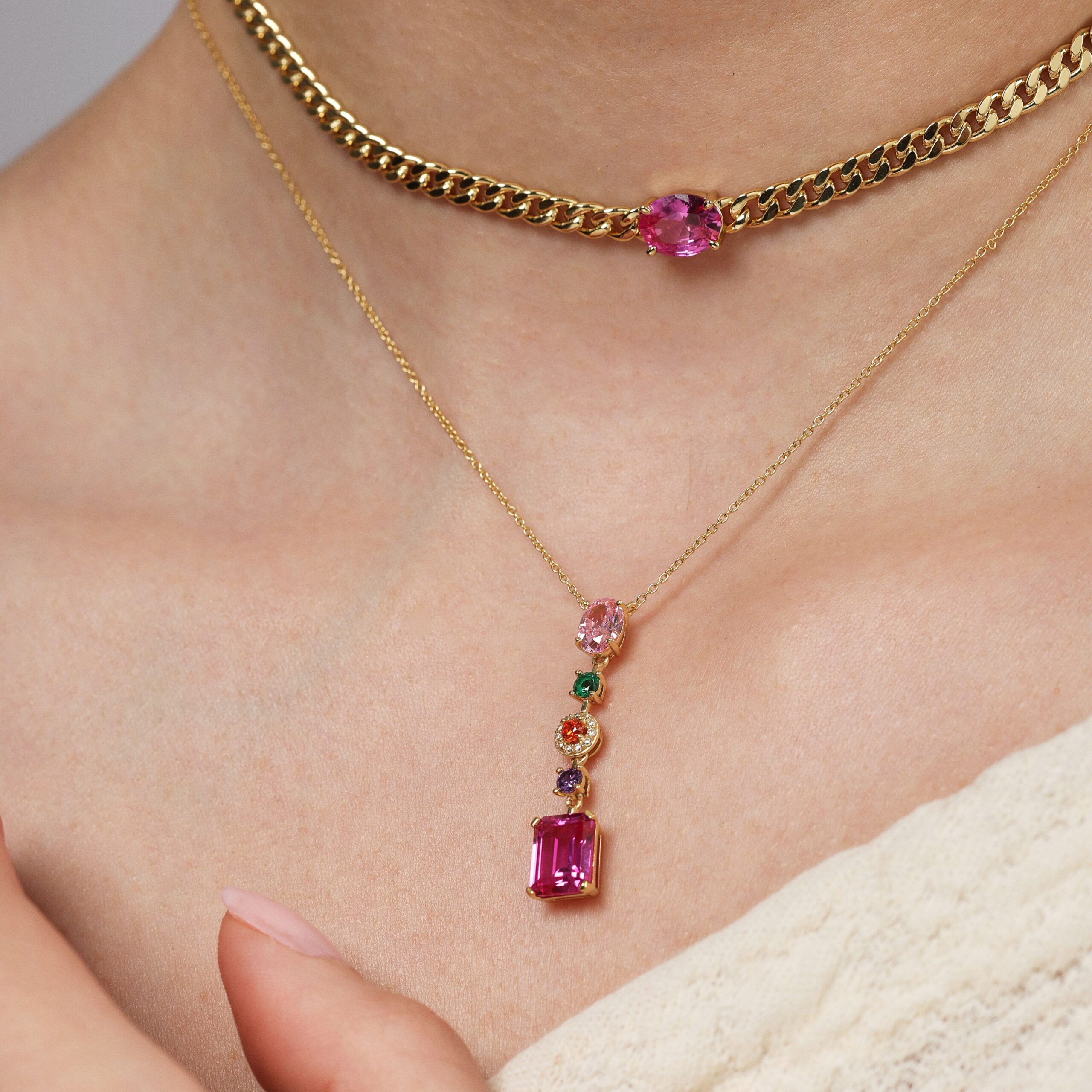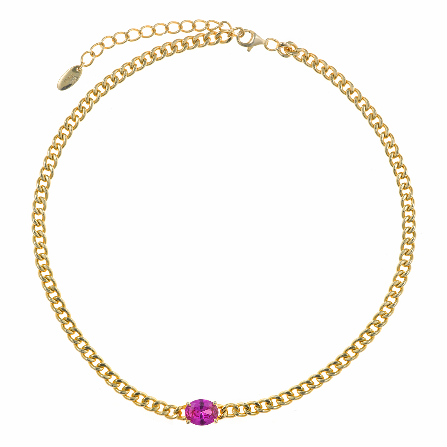 Monté sur une base dorée en argent trempé or, il se porte près du cou grâce à sa chaîne de 31,5 cm avec une extension de 5 cm.