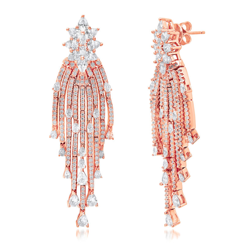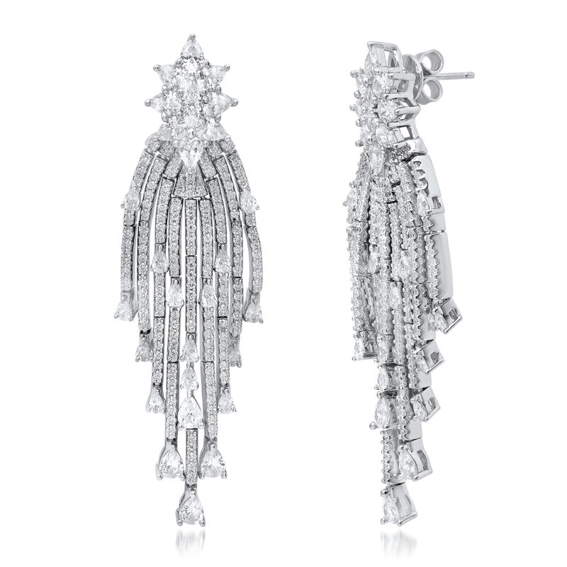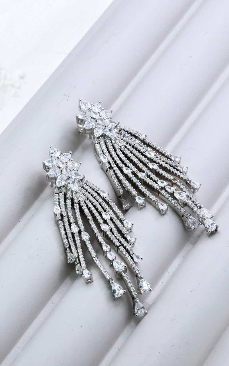 Boucles d’oreilles Chute Étincelle Bridal – Élégantes et scintillantes, ces boucles se composent d’une cascade délicate ornée de Diamelite 5A, capturant chaque reflet de lumière. Réalisées en argent trempé or, elles offrent une brillance raffinée, idéale pour sublimer une tenue de mariage ou une occasion spéciale.