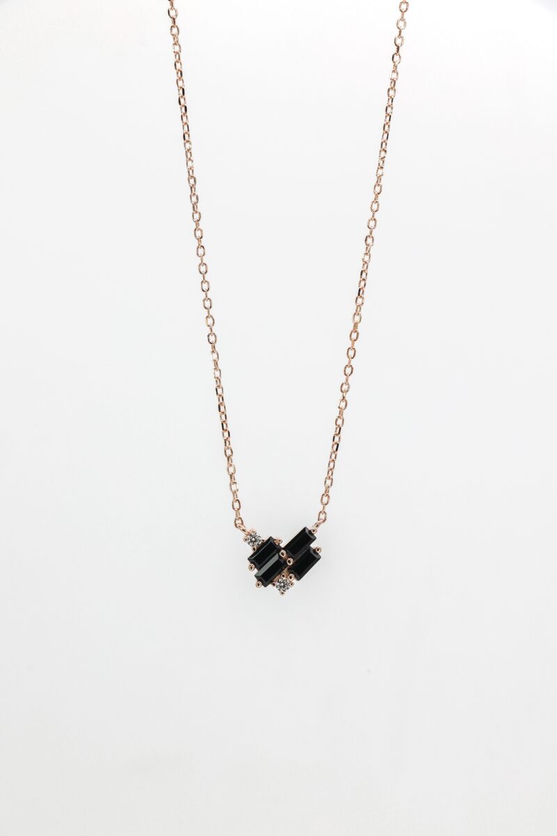 Le tout monté sur une chaîne de 40 cm en argent trempé or rose, avec un pendentif mesurant 1 cm x 1 cm. Un essentiel à porter au quotidien ou à offrir avec le cœur.
