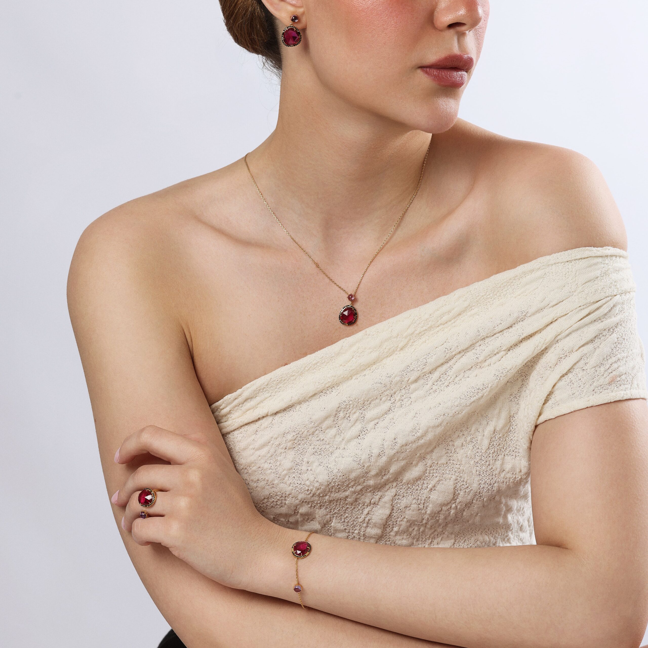 Un bijou vibrant à l’élégance naturelle. Le Collier Color Stone Salva se distingue par sa pierre centrale en Grenat Améthyste, aux reflets profonds et lumineux. Monté sur une base en argent trempé or avec une finition dorée, il apporte une touche de couleur sophistiquée à toutes vos tenues.