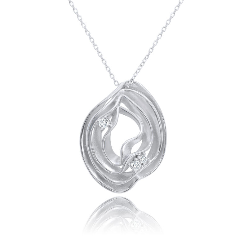 Tout en finesse, ce collier met en valeur un pendentif goutte à l’aspect mat, subtilement pavé de Diamelite 5A. Monté sur une chaîne argentée, il se décline en plusieurs finitions pour s’accorder à toutes vos envies.