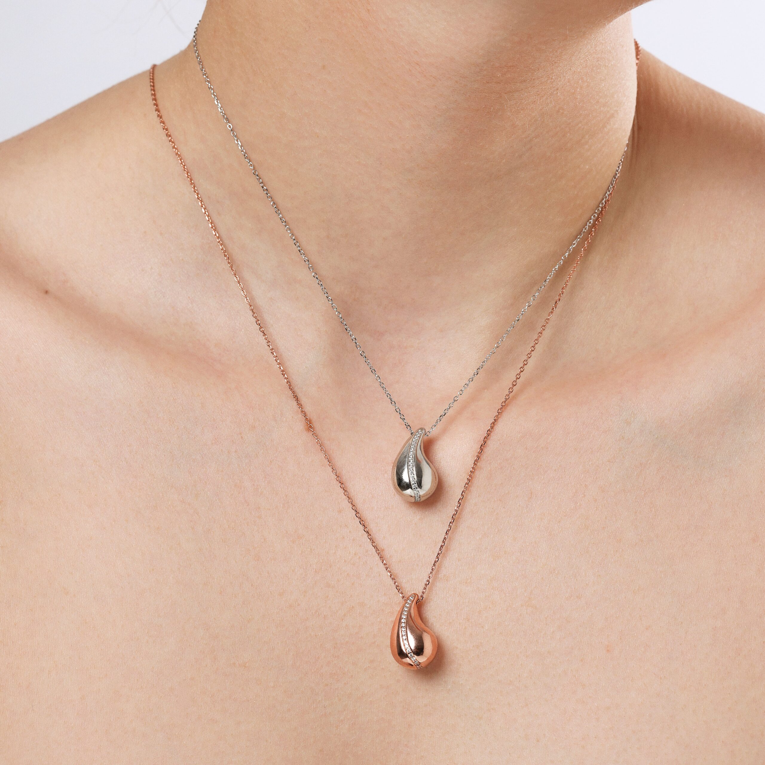 Épuré et lumineux, le Collier Goutte Ligne se distingue par son pendentif allongé en forme de goutte, sublimé par l’éclat de la Diamelite 5A. Disponible en finitions or rose ou argent, il est conçu en argent trempé or pour une élégance durable et raffinée. Une pièce délicate, idéale à porter seule ou en superposition.