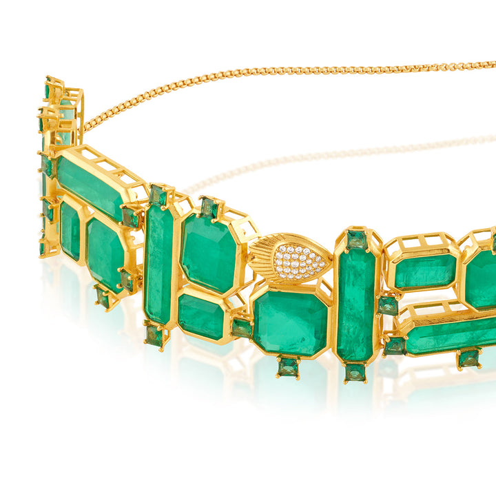 Collier JAYP Isharya Green Emerald – Orné de somptueuses pierres Doublet Dark Emerald, ce collier associe la profondeur du vert émeraude à l’éclat des finitions en rhodium. Une création sophistiquée qui met en valeur la beauté des pierres naturelles avec une touche contemporaine.