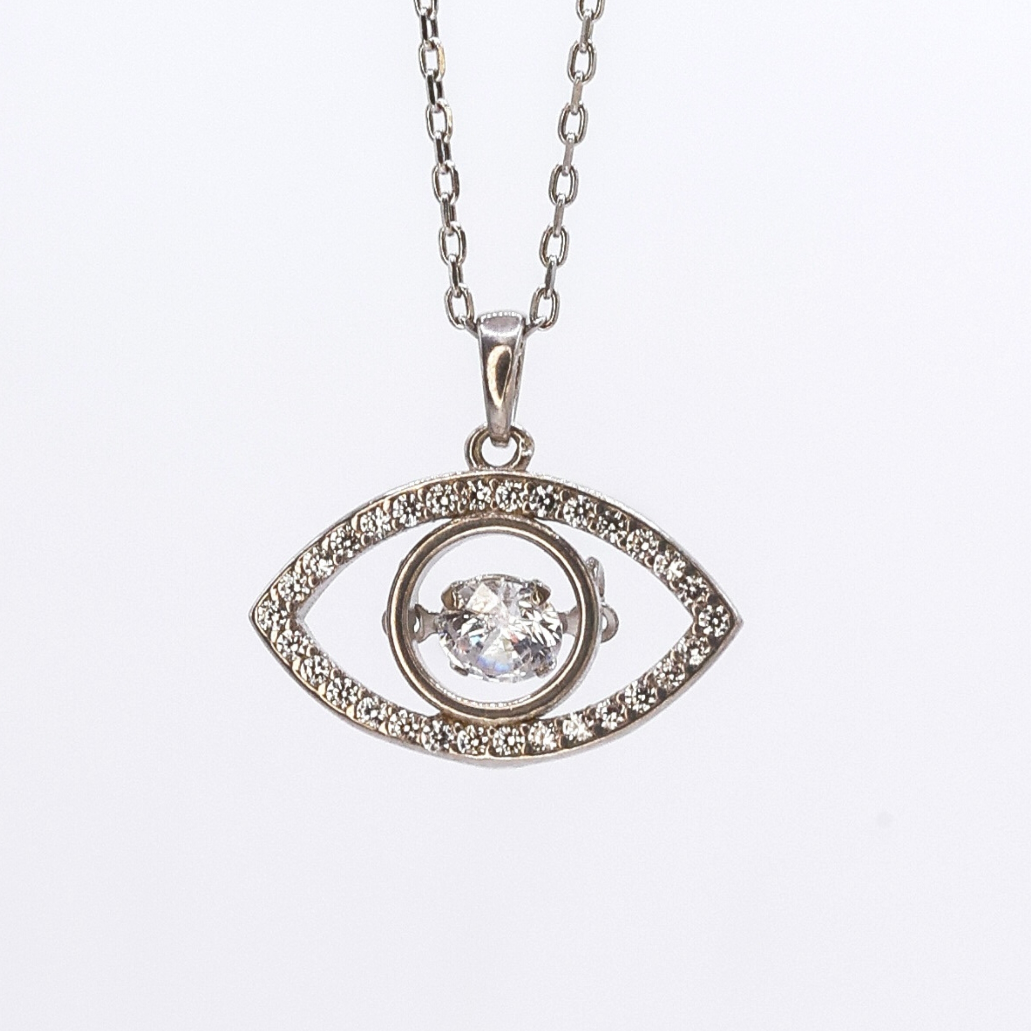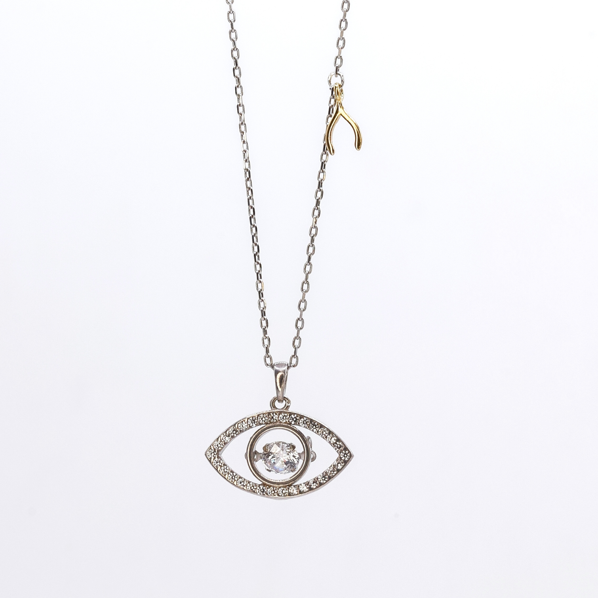 Porte-bonheur revisité avec élégance, ce collier fin en argent trempé or met en valeur un œil protecteur serti de Diamelite 5A. À porter seul ou en accumulation pour une touche symbolique et lumineuse.