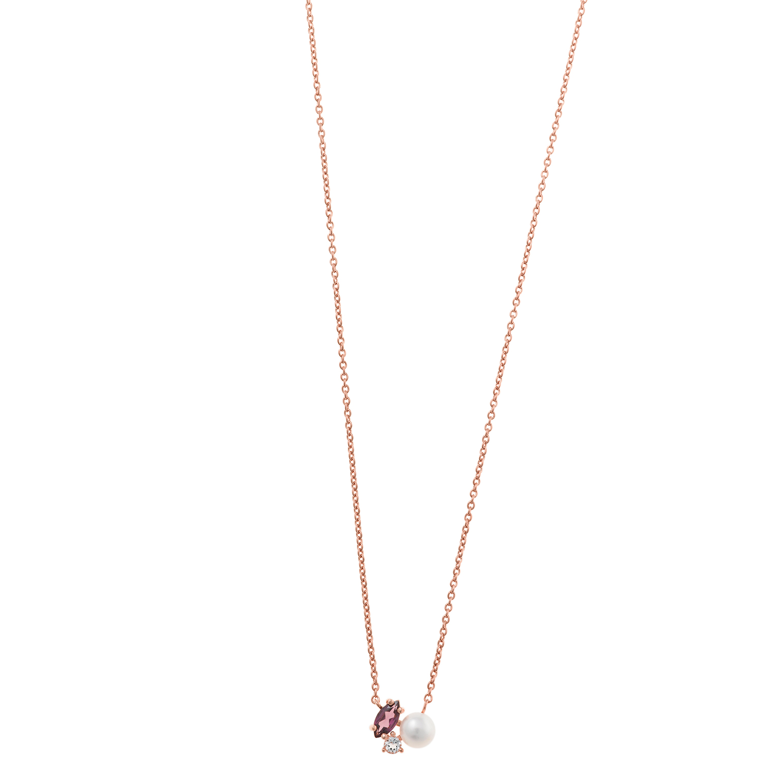 Un collier délicat et féminin où se mêlent éclats de Diamelite 5A, Quartz thermal et perles de culture. La chaîne en rose gold sublime les nuances violettes pour une allure à la fois douce et sophistiquée.