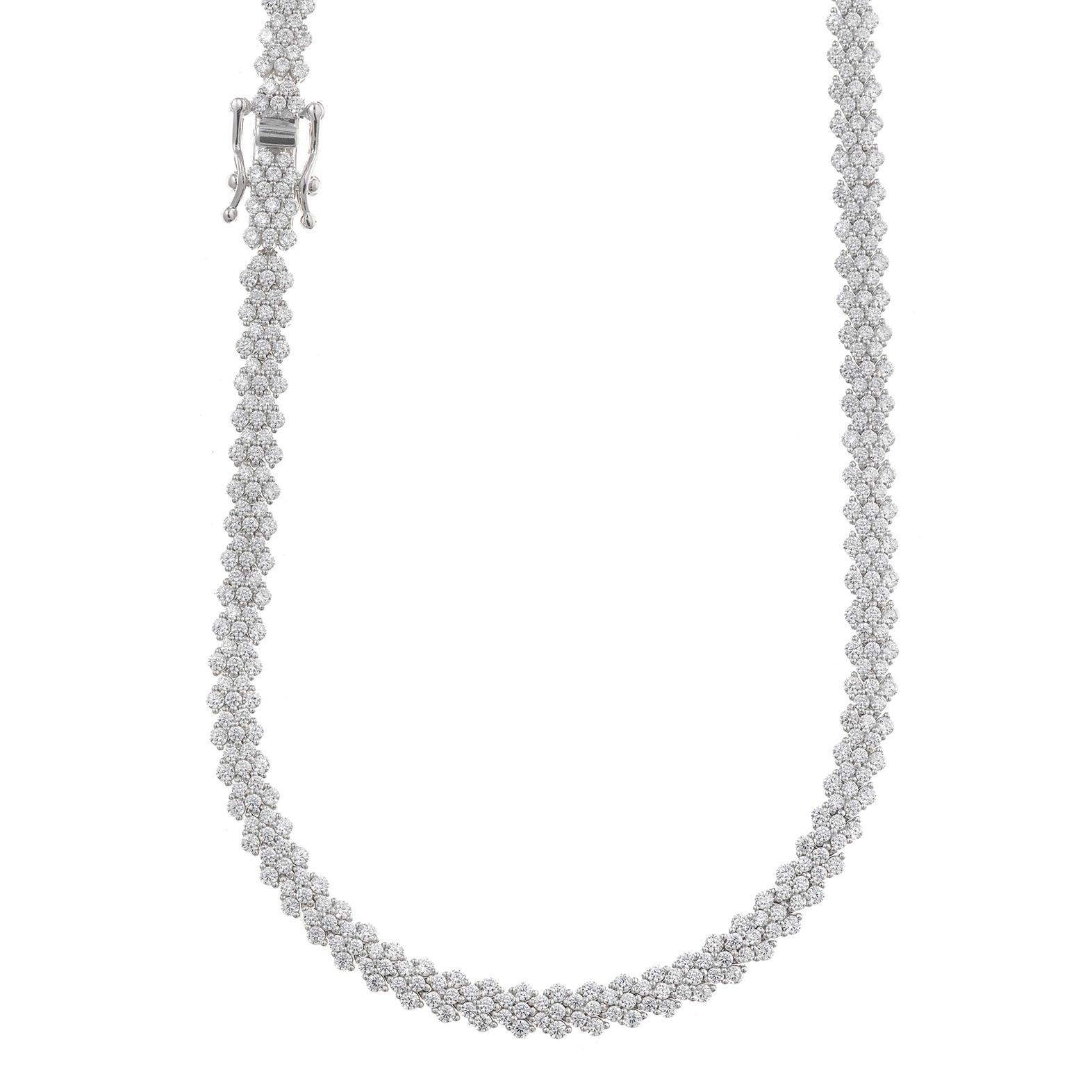 Une création subtile et texturée, où le tressage délicat se mêle à un pavage éclatant de pierres Diamelite 5A. Une pièce sophistiquée qui habille le cou avec élégance et modernité.