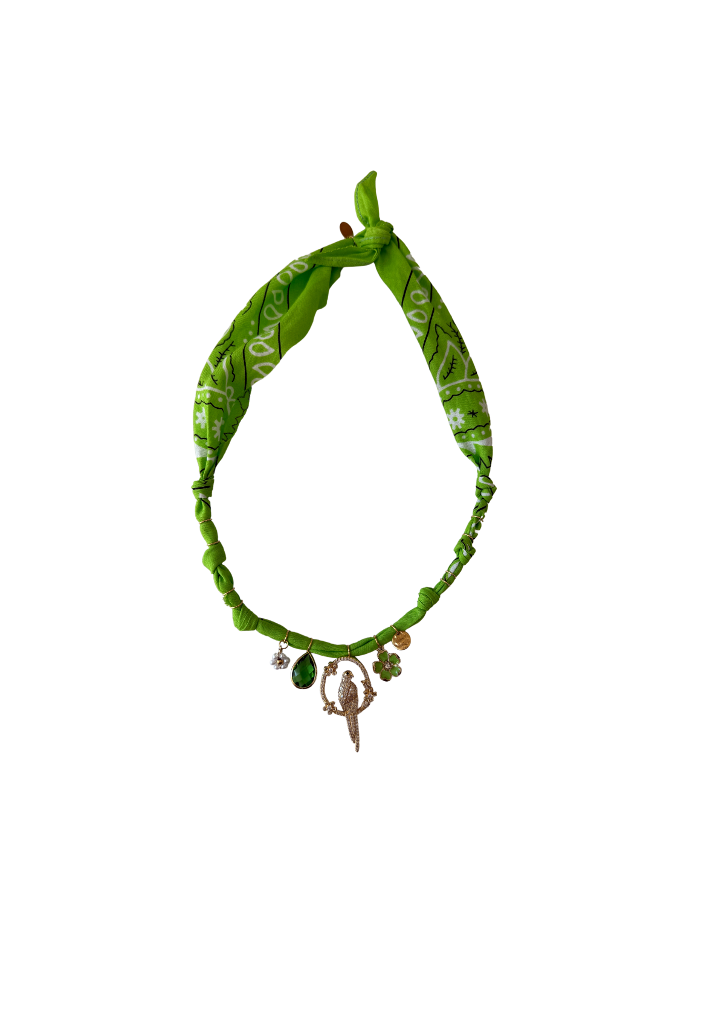 Inspiré du charme intemporel du bandana, ce bijou polyvalent se porte comme collier, bracelet ou bijou de cheville. Fabriqué en coton 100%, il est orné d’un motif en acier inoxydable et de pierres naturelles pour un style assuré.