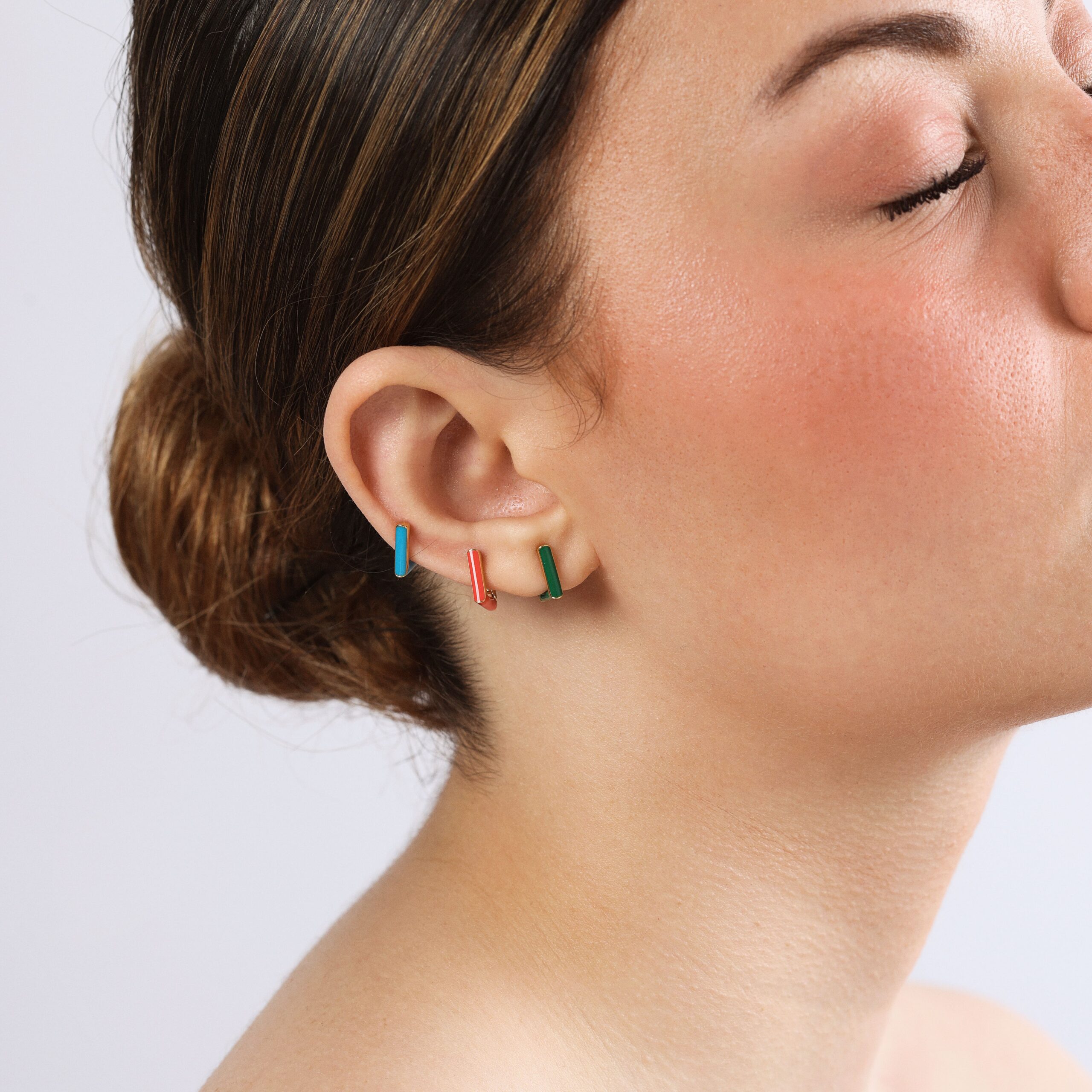 Graphiques et délicates, ces mini boucles en forme de carré se parent d’un émaillage coloré subtil, pour une touche de modernité et de fraîcheur. Leur format XS les rend parfaites au quotidien, seules ou en accumulation. Conçues en argent trempé or, elles allient minimalisme et éclat discret.