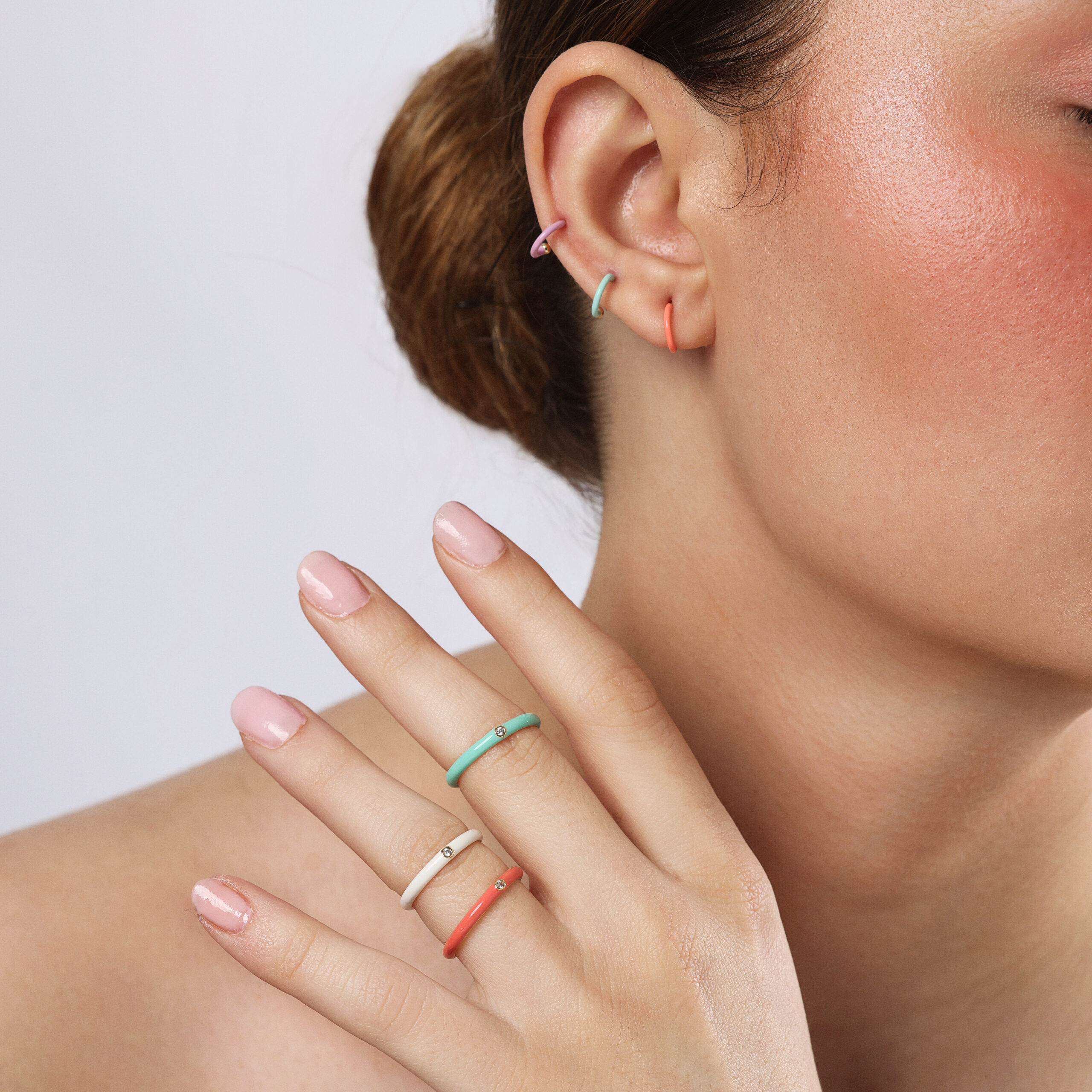 Une touche colorée à glisser dans votre composition d’oreilles. Ce piercing séduit par ses finitions émaillées et son éclat subtil.