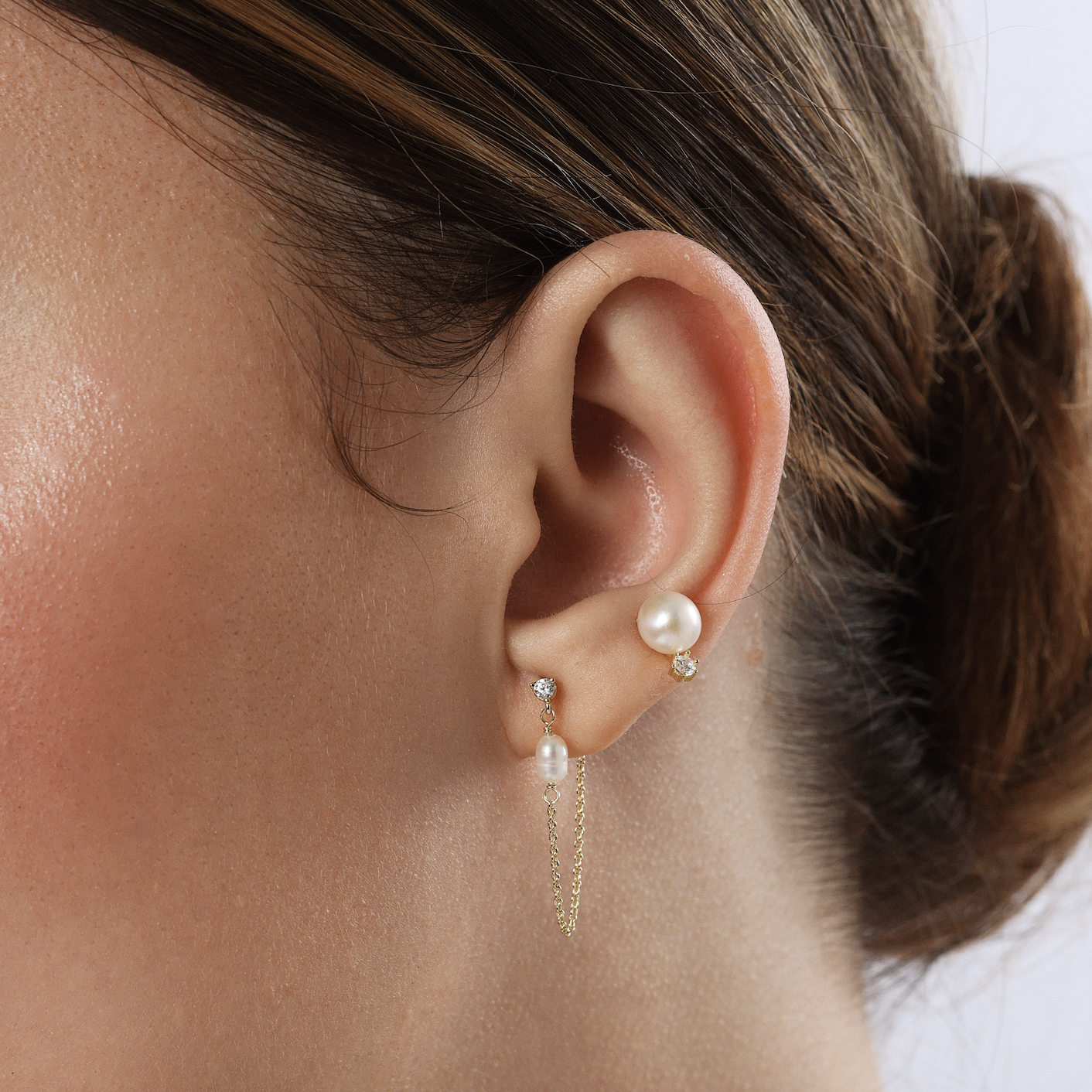 Boucles d’oreilles Duo Perle – Un duo élégant mêlant la pureté des perles de culture à l’éclat raffiné de la Diamelite 5A. Disponibles en finition dorée, ces boucles en argent trempé or apportent une touche délicate et sophistiquée, idéale pour illuminer subtilement vos tenues.