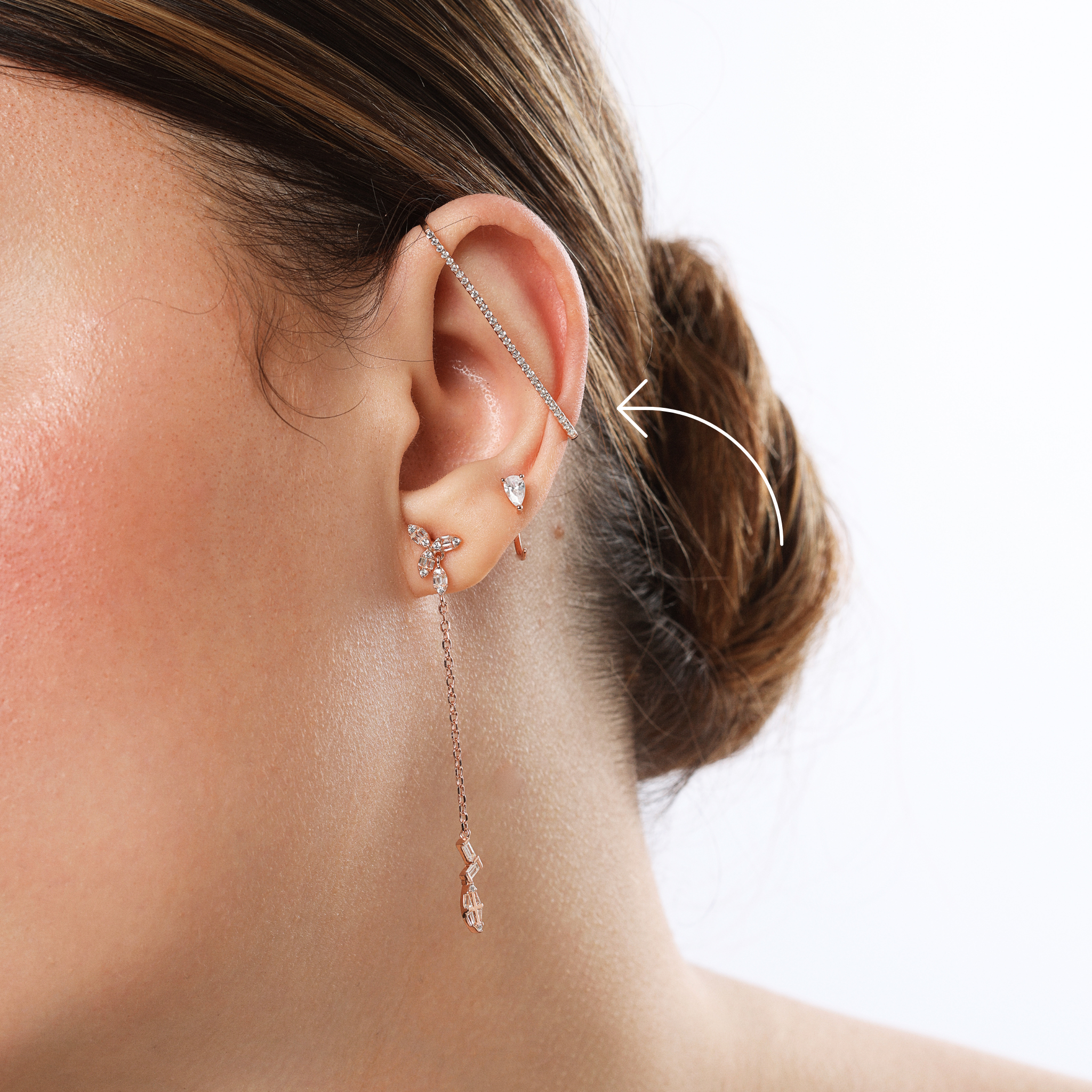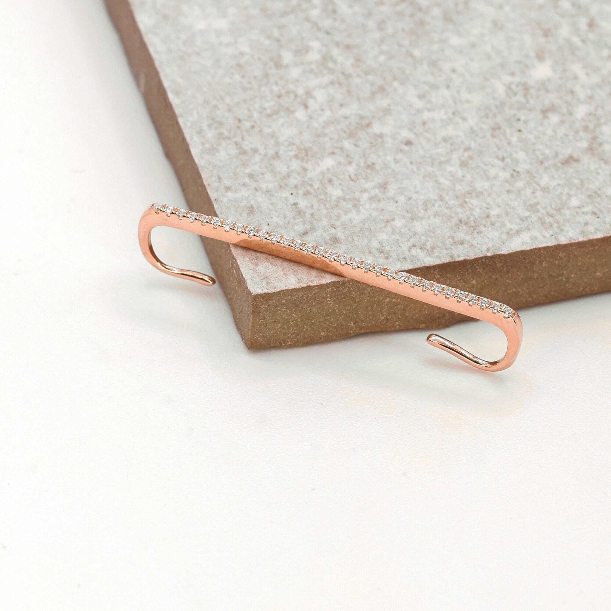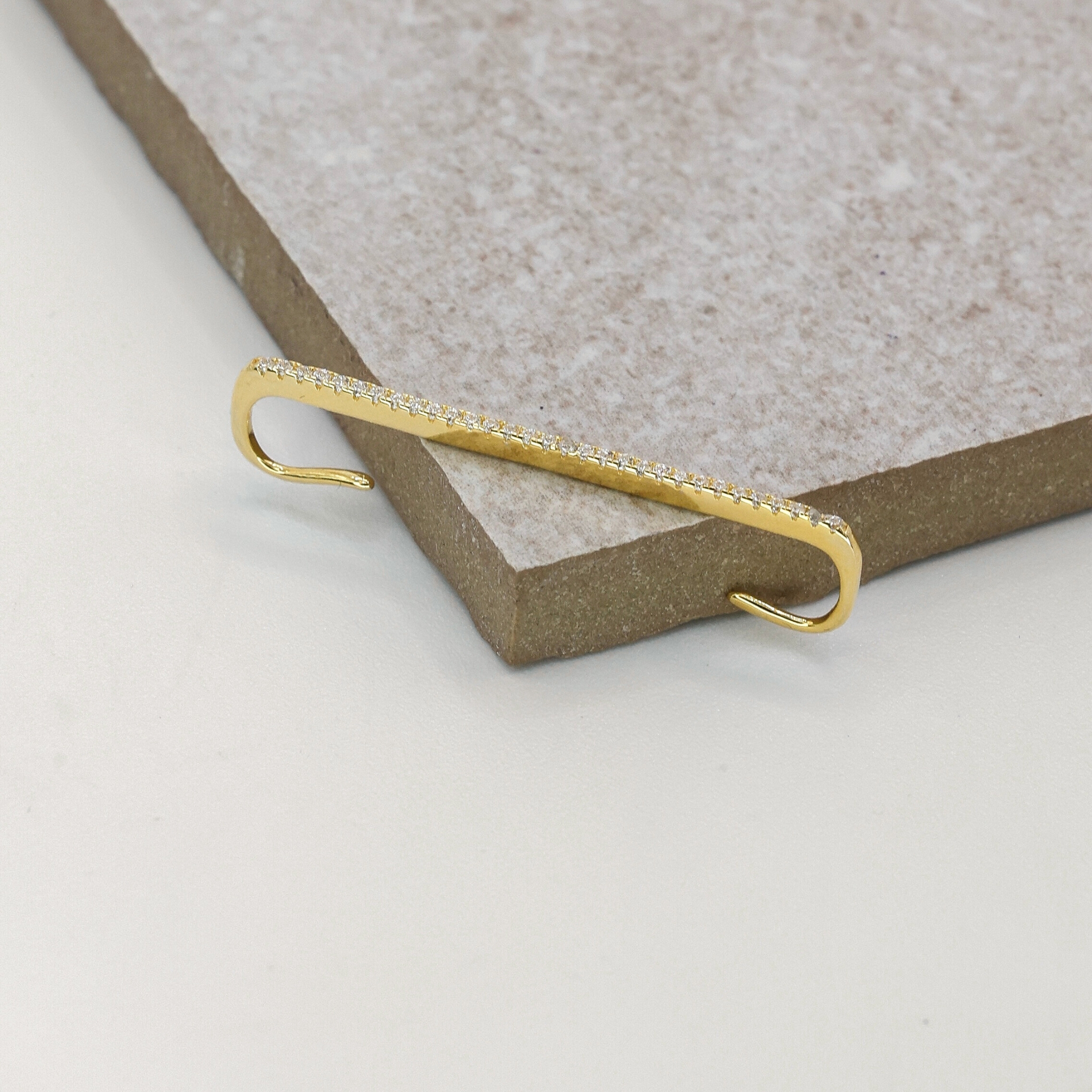 Affirmez votre style avec cette barre d’oreille minimaliste, finition or jaune, ornée d’une Diamelite 5A éclatante. Conçue pour un effet faux piercing, elle se clipse facilement sans perçage. Un bijou moderne et audacieux, en argent trempé or, à porter seul ou en accumulation.