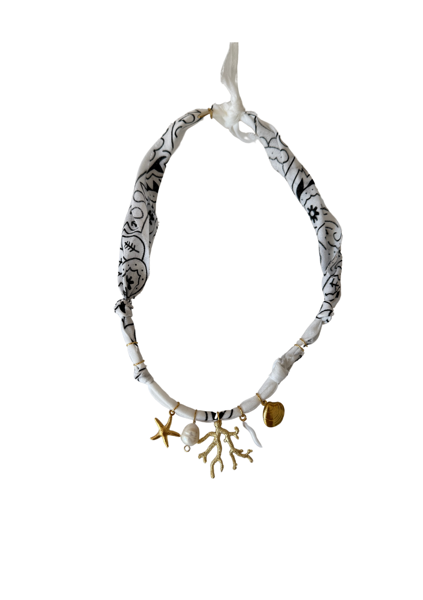 L’élégance décontractée d’un bijou modulable, inspiré du bandana, avec coton pur, acier inoxydable et pierres naturelles.