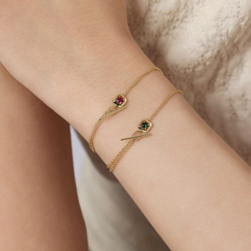 Un bracelet raffiné qui apporte une note lumineuse et colorée au poignet. Confectionné en argent 925 trempé dans un bain d’or et orné de pierres naturelles éclatantes.