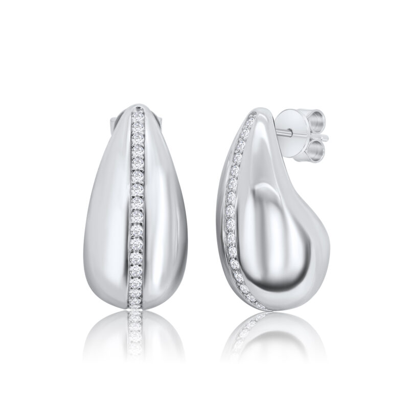 Rehausser votre look grace à ces boucles en forme de goutes délicatement accompagnées de Diamelites 5A en ligne.