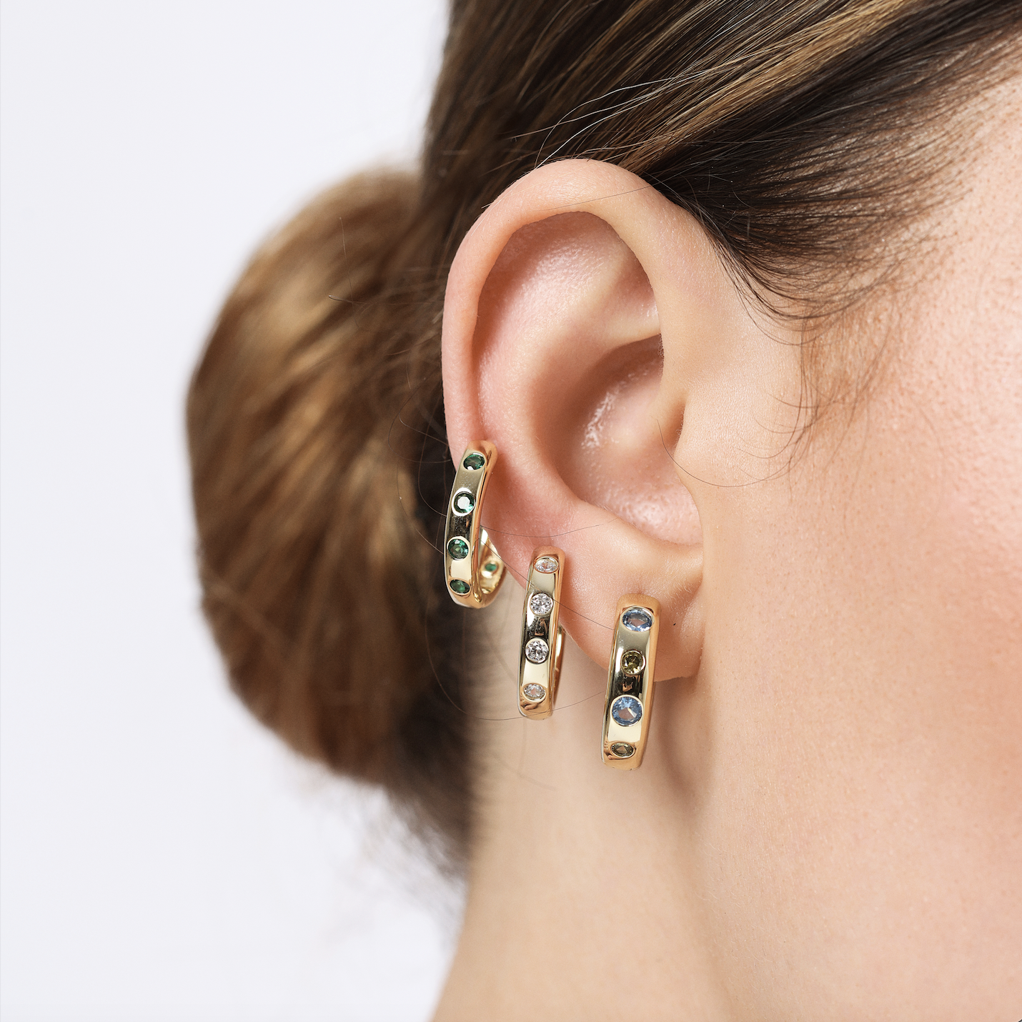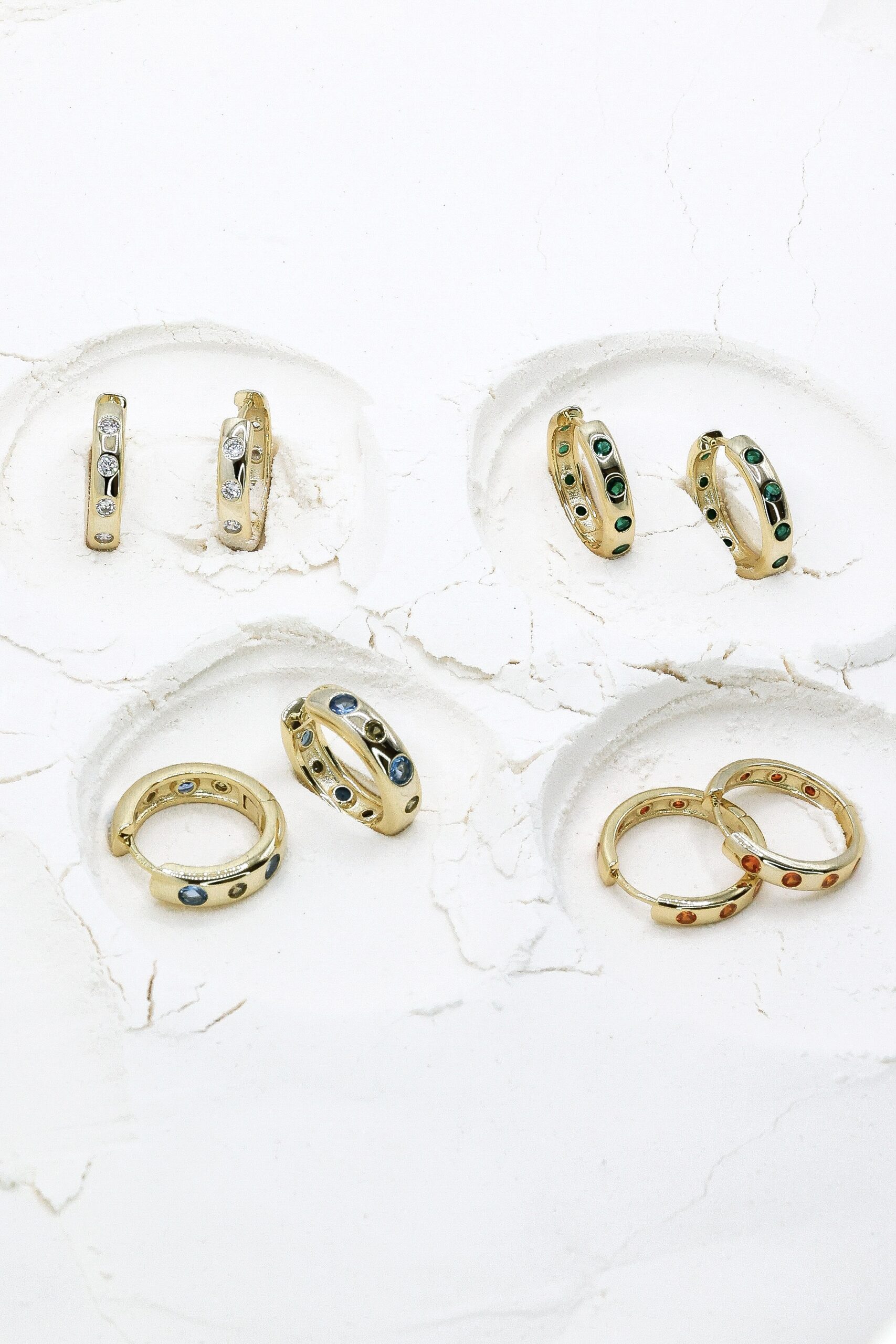 Un bijou poétique et color. Ces Mini Créoles mêlent avec délicatesse des Pierres de couleurs à une base dorée en argent trempé or. Chaque créole capture la lumière pour un rendu éclatant et coloré.