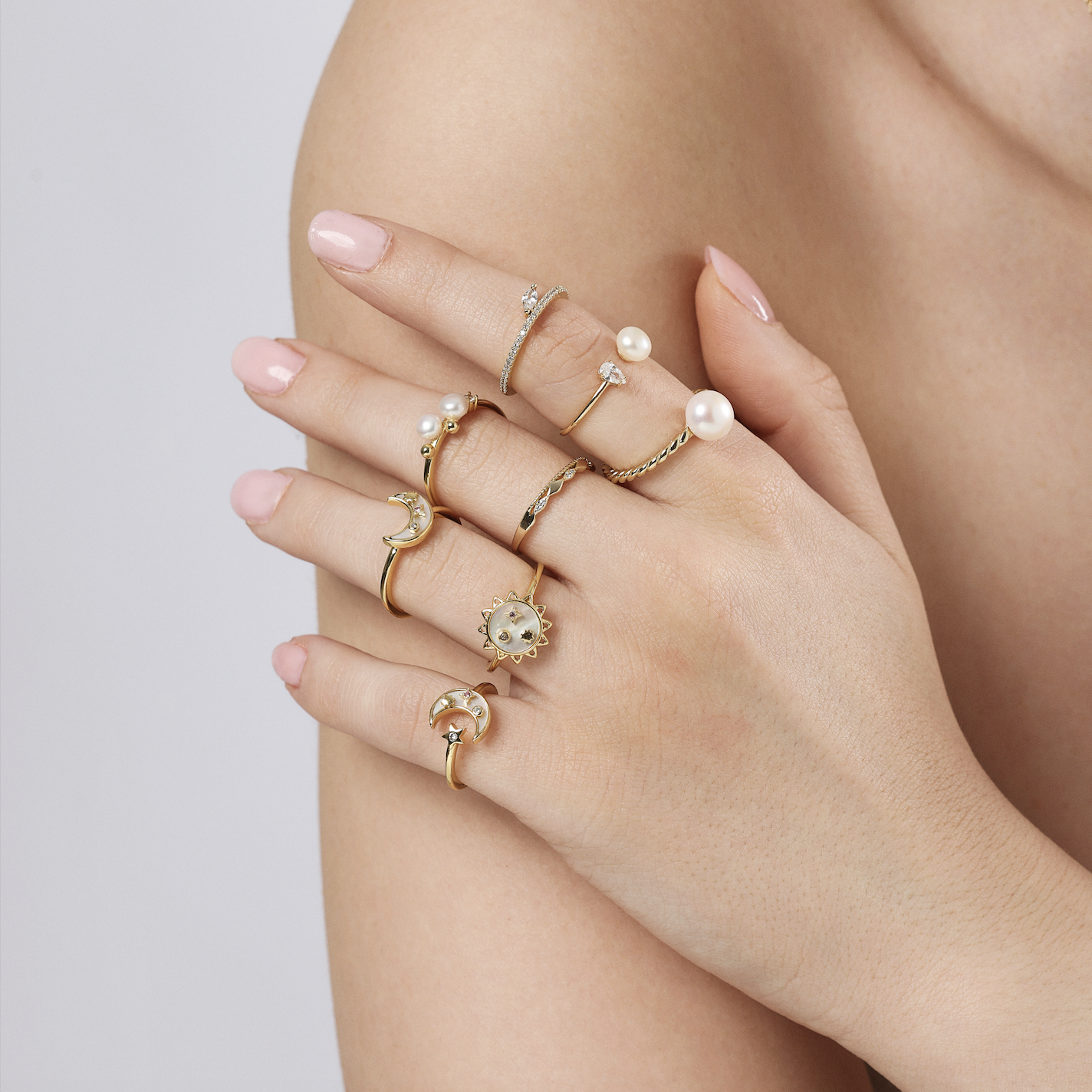 Bague Mini Duo Perle – Élégante et délicate, cette bague associe harmonieusement deux perles de culture à un sertissage en Diamelite 5A. Réalisée en argent trempé or, elle offre une touche raffinée et féminine, parfaite pour sublimer toutes vos tenues.