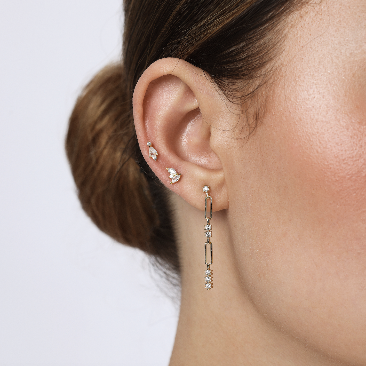 Boucles d’oreilles Mini Maillons – Sobres et élégantes, ces boucles reprennent la finesse du maillon délicatement serti de Diamelite 5A. Disponibles en finition or ou argent, elles sont réalisées en argent trempé or pour un éclat durable et raffiné, parfait au quotidien comme pour des occasions spéciales.
