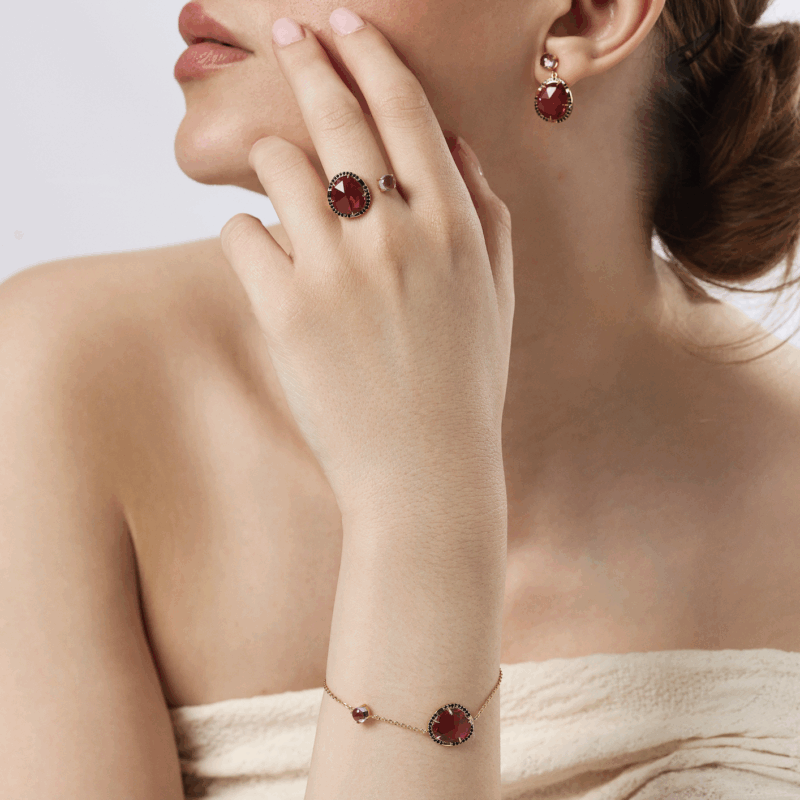 Ces boucles carrées associent l’éclat chaleureux de l’or à la beauté intense du Quartz thermal . Montées sur une base en argent trempé or, elles offrent une touche de couleur vibrante et un style raffiné, parfait pour illuminer votre look.