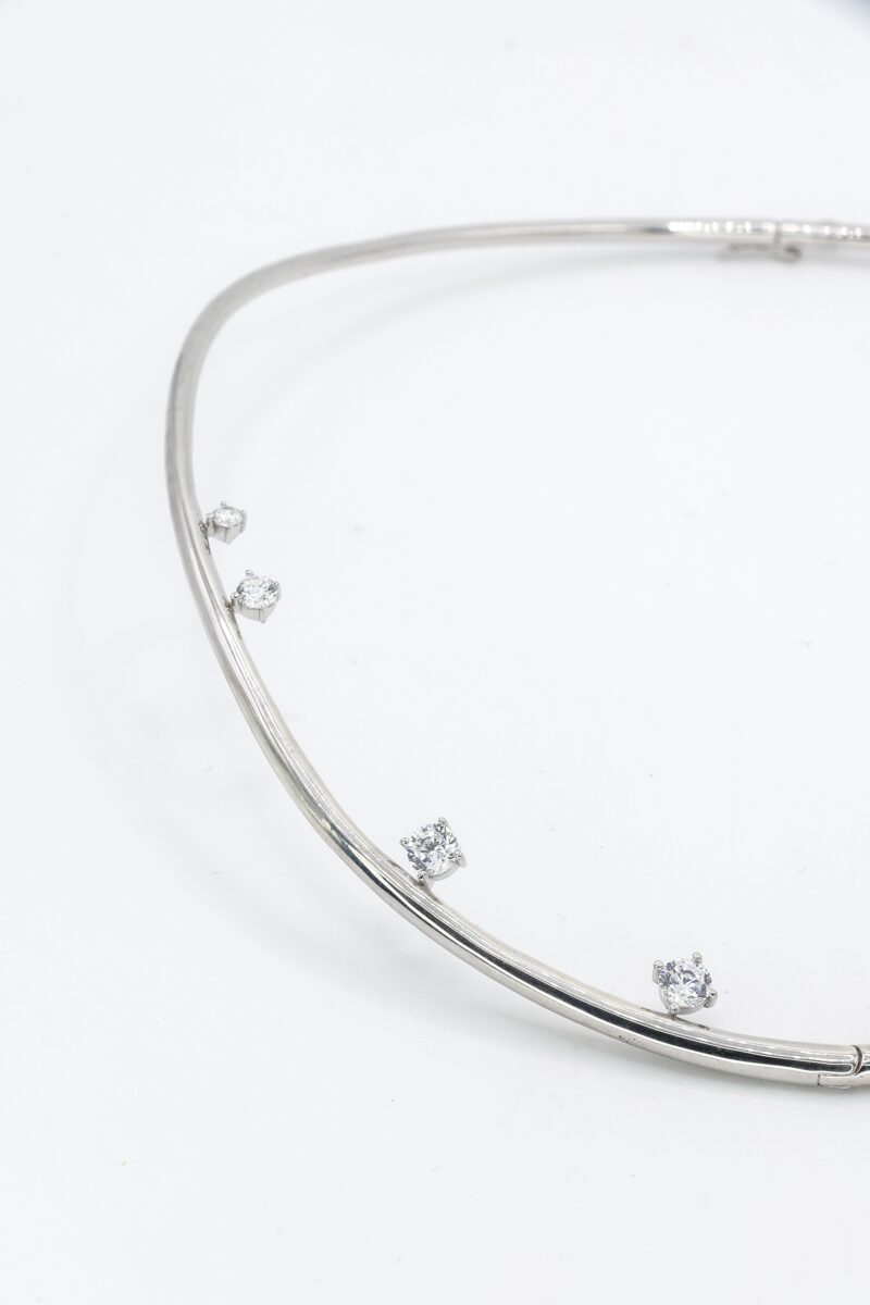 Minimaliste et raffiné, ce collier jonc apporte une touche d’élégance intemporelle à votre tenue. Sa finition or sublimée par notre pierre Diamelite 5A reflète subtilement la lumière pour un éclat discret mais sophistiqué