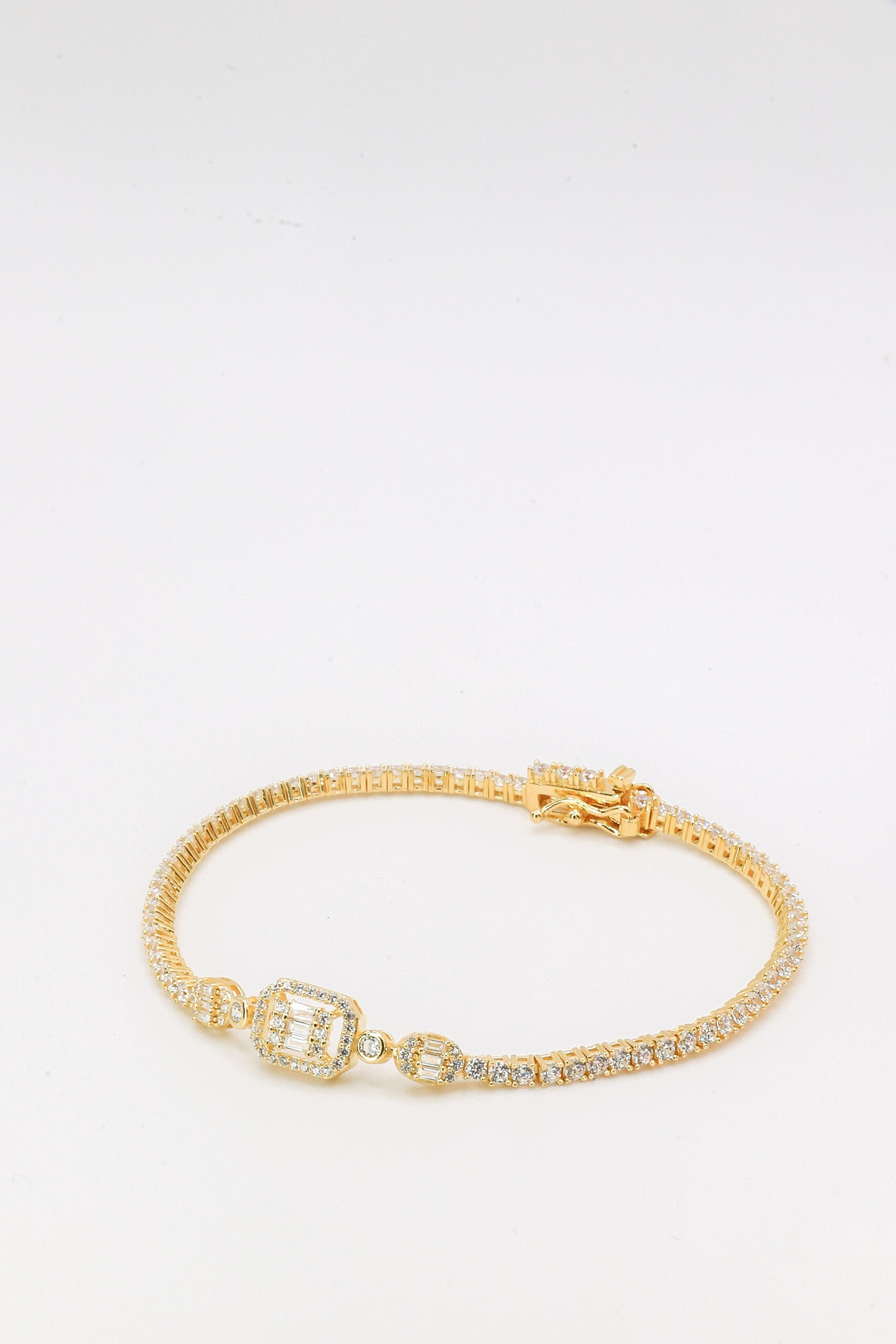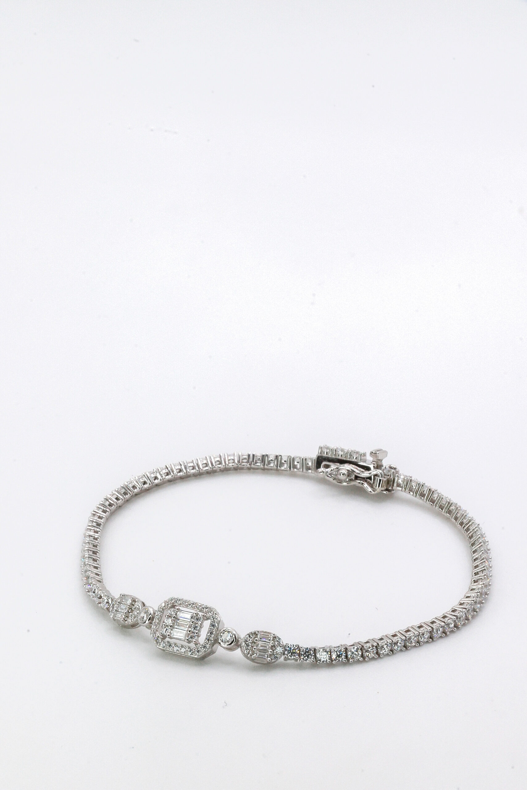 Un bracelet raffiné au design géométrique, orné de pierres Diamelite 5A qui captent la lumière à chaque mouvement. Sa silhouette fine et son motif carré lui donnent une allure contemporaine et élégante.