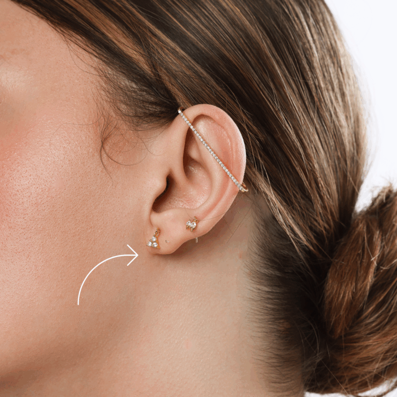 Épuré et élégant, ce piercing se distingue par son éclat discret grâce à une Diamelite 5A finement sertie. Sa finition dorée en argent trempé or en fait un accessoire raffiné, parfait pour illuminer subtilement l’oreille au quotidien ou en accumulation.