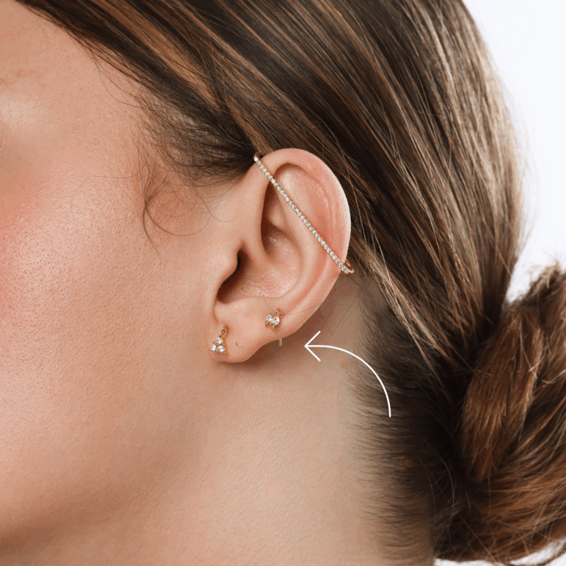 Discret et raffiné, ce piercing séduit par la brillance délicate de sa Diamelite 5A finement sertie. Sa finition dorée en argent trempé or lui confère un éclat subtil, idéal pour illuminer l’oreille avec élégance, que ce soit porté seul ou en accumulation.