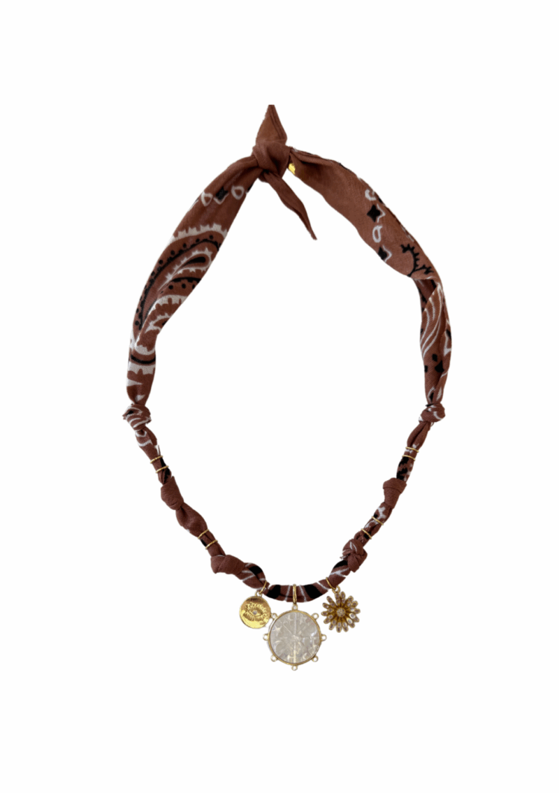 Ce bijou bandana réinvente la polyvalence : 3 usages, coton pur et finitions en acier inoxydable et pierres naturelles.