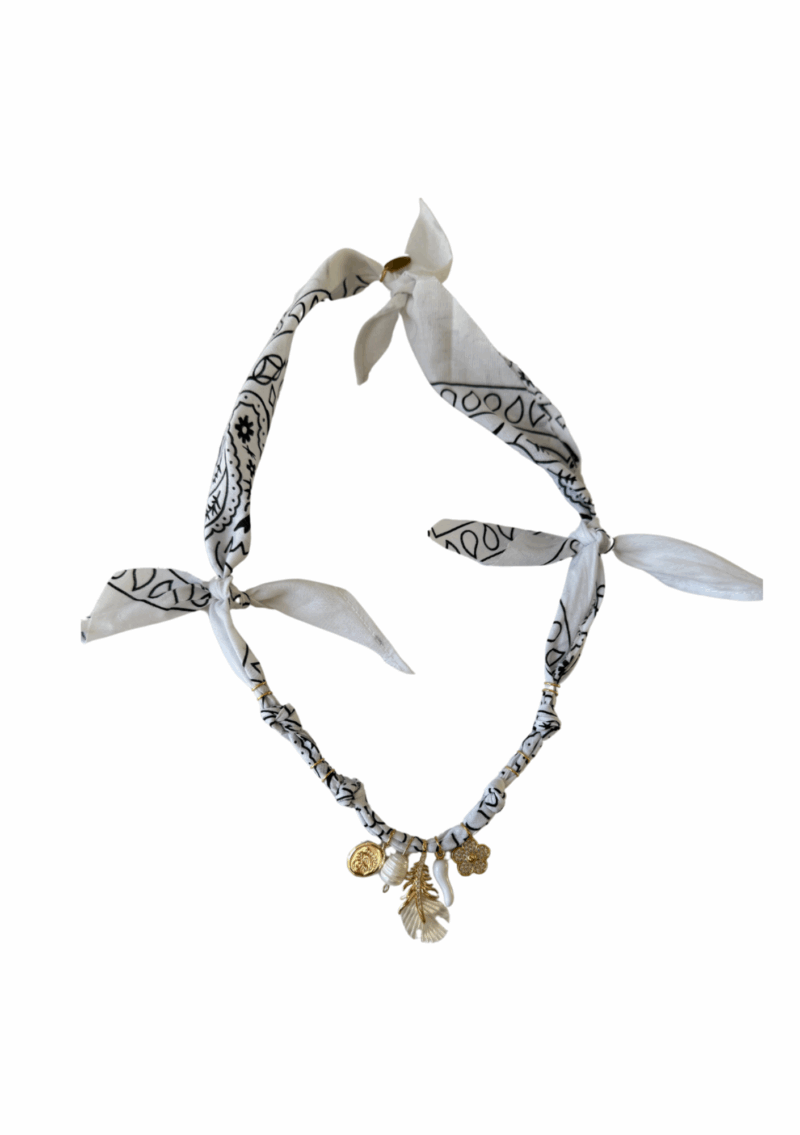 Un seul bijou, trois façons de briller : bandana en coton pur, acier inoxydable et pierres naturelles.