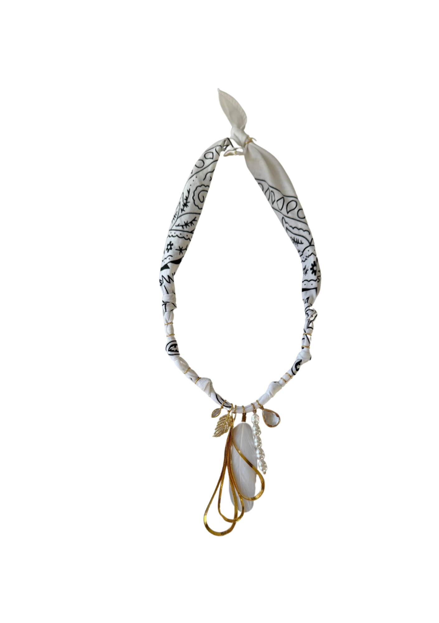 L’élégance pratique d’un bijou 3-en-1 façon bandana, en coton 100% et acier inoxydable serti de pierres naturelles.