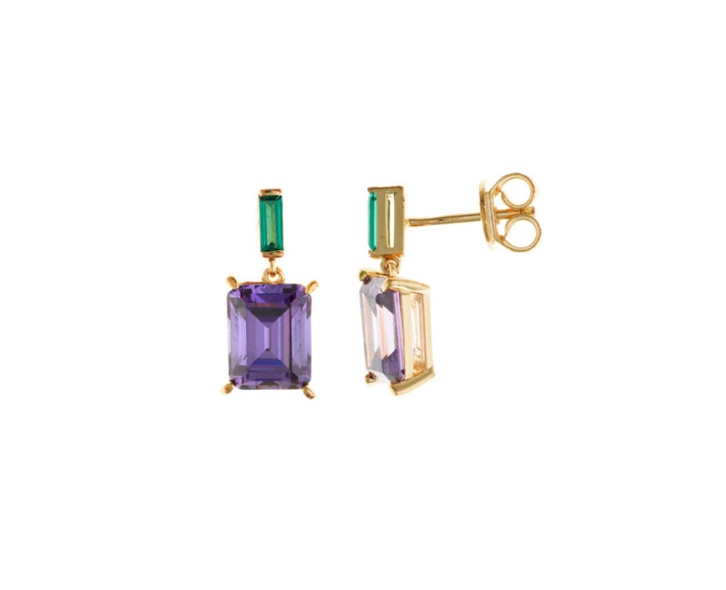 Boucles d’oreilles Square Améthyste Salva – Sobres et sophistiquées, ces boucles carrées mettent en valeur un quartz thermal d’un mauve profond, serti sur une base dorée en argent trempé or. Un bijou élégant qui allie couleur vibrante et éclat raffiné.