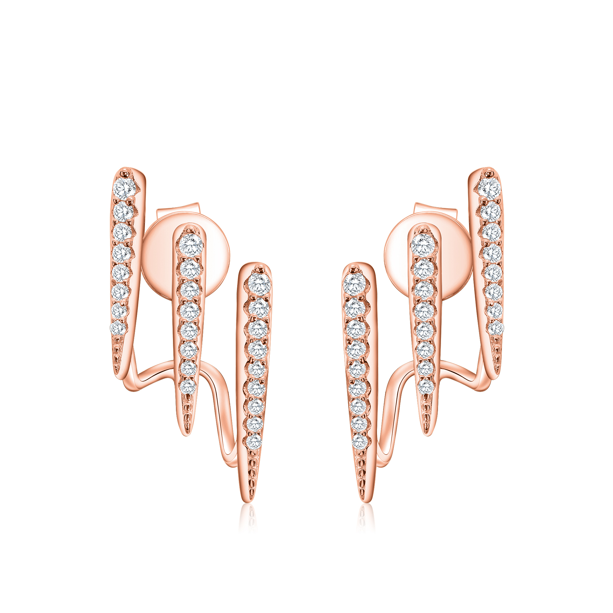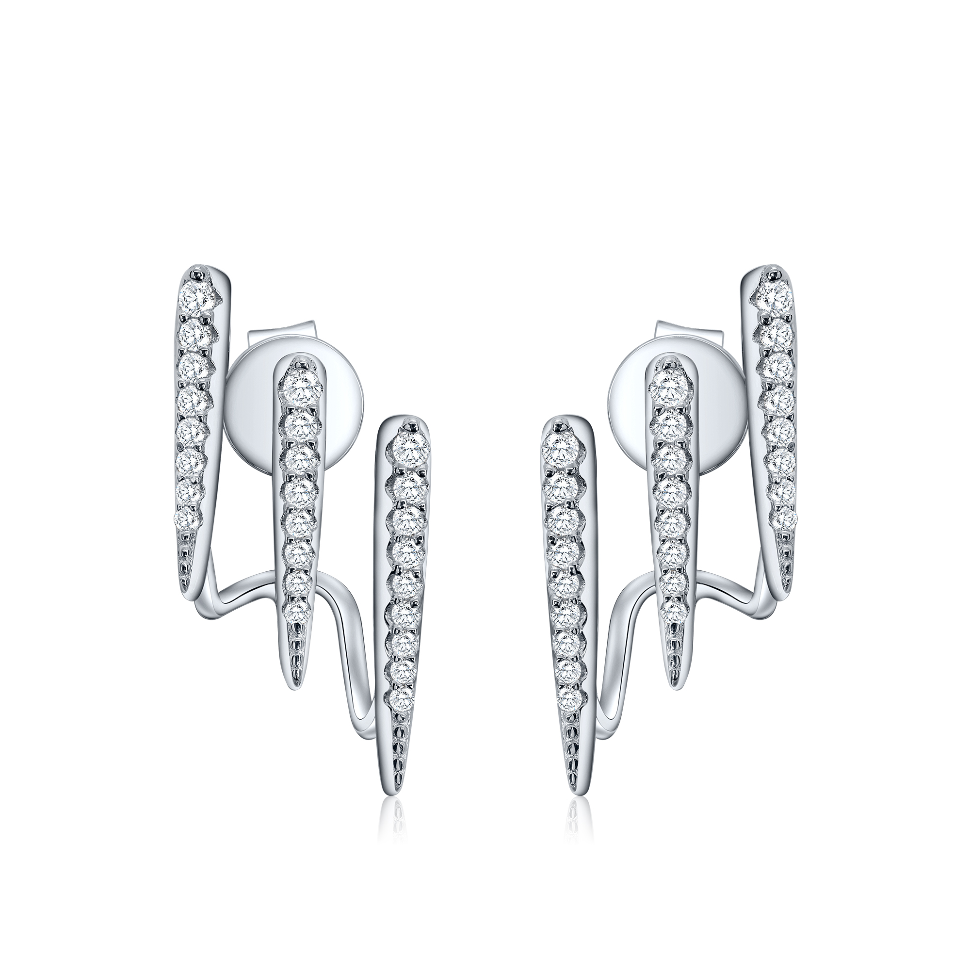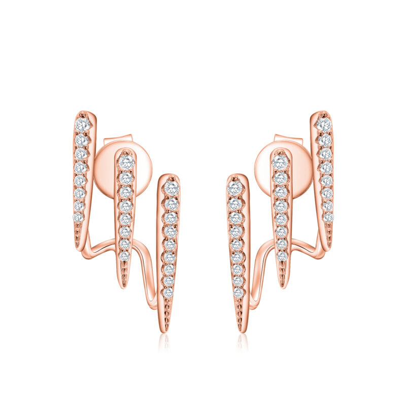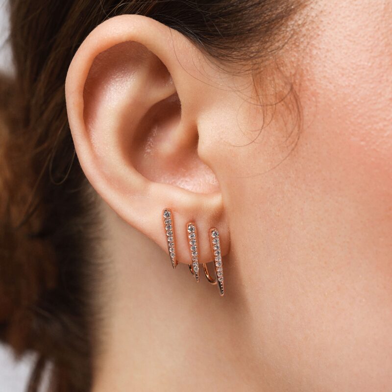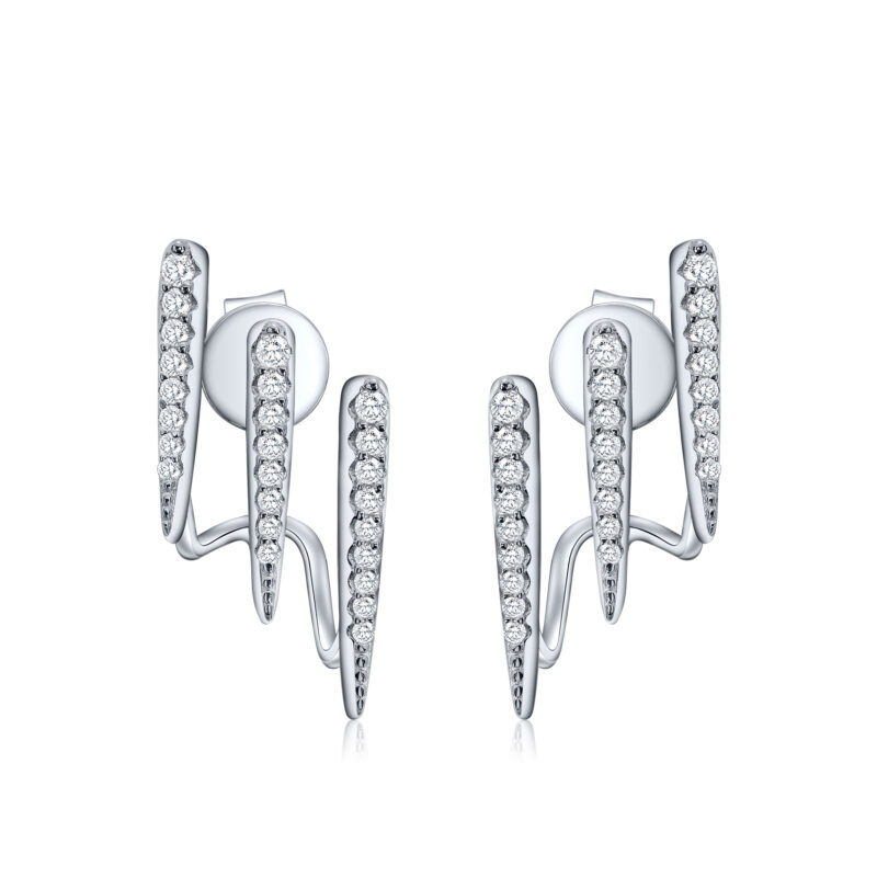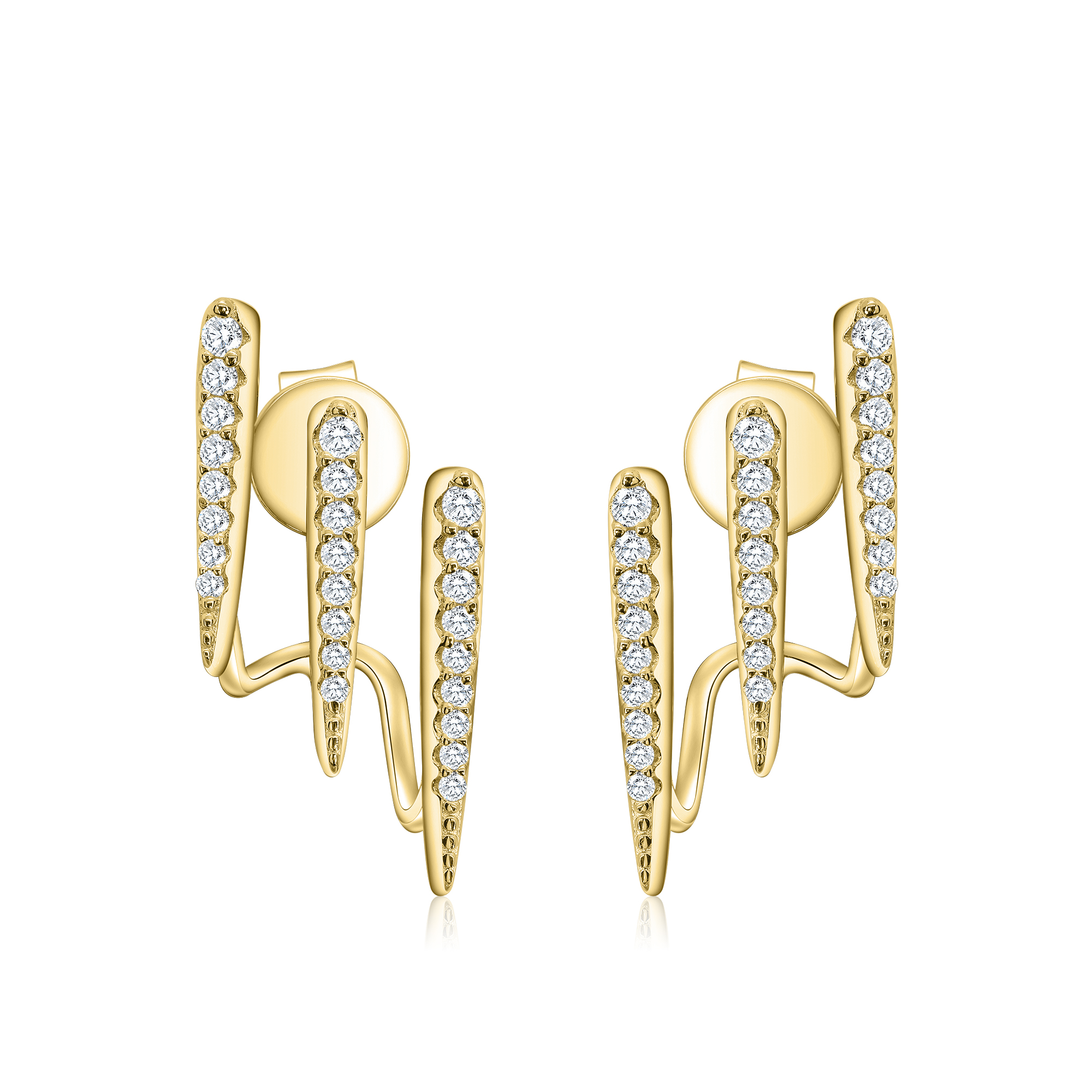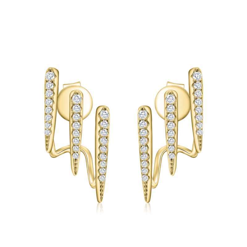 Élégance minimaliste et éclat discret se rencontrent dans ces boucles composées de trois barres fines serties de Diamelite 5A. Leur design épuré en argent trempé or en font un bijou moderne, à porter au quotidien ou pour sublimer une tenue de soirée.